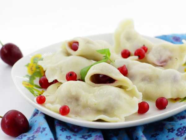 Заварное тесто для вареников с вишней, клубникой, другой начинкой без труда вытягивается, эластично и удобно при лепке. Приятных кулинарных экспериментов!