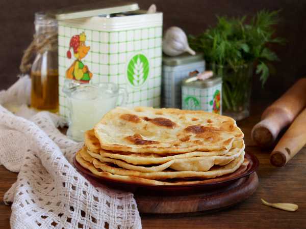Обжаренные на сковороде лепёшки с сыром и зеленью переложите на тарелку и смажьте сливочным маслом. На время, пока вы обжариваете оставшиеся заготовки, можно прикрыть уже готовые лепешки тарелкой или крышкой и укутать полотенцем, для того чтобы они оставались теплыми.