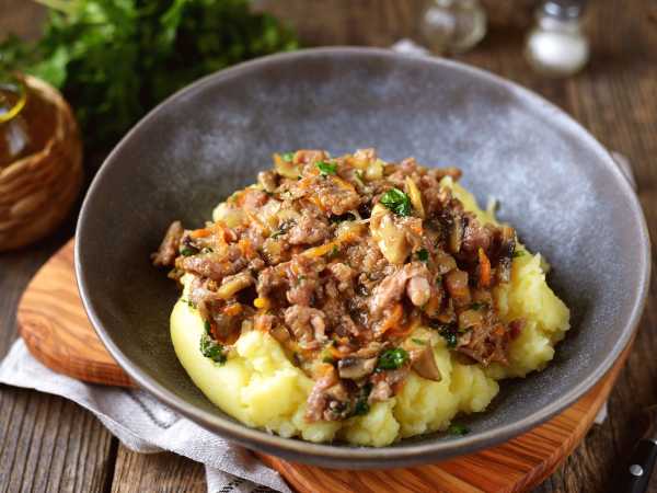 А затем выключите огонь, и по желанию, добавьте 1-2 щепотки свежей зелени. Если хочется, чтобы текстура подливки получилась еще более однородной, можно дополнительно измельчить компоненты блендером.