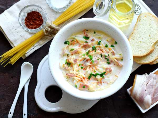 Для приготовления куриного супа с плавленным сыром вам понадобятся компоненты, указанные в списке.