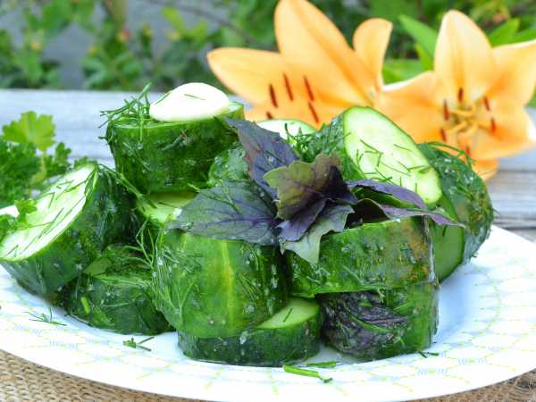 Через 24 часа наши малосольные огурцы с укропом и чесноком готовы!