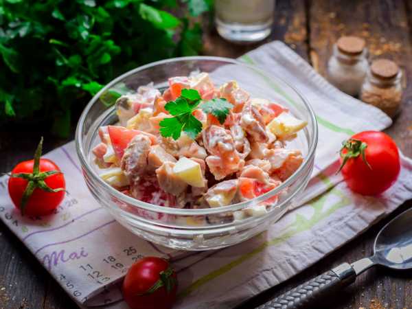 Хорошо все перемешайте. Прикройте емкость с салатом крышкой или пищевой пленкой. Поместите салат в холодильник минимум на 1 час, для того чтобы он настоялся и полностью охладился, а затем подавайте к столу.