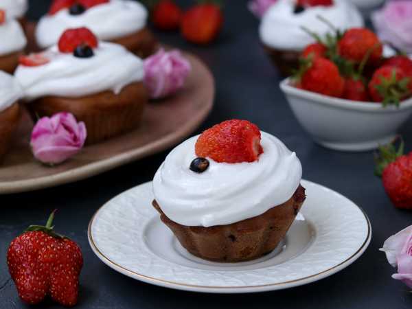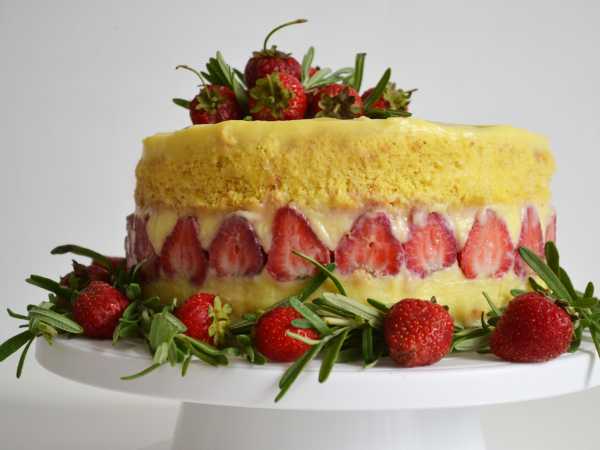 По истечении времени извлечь торт из формы, украсить по желанию. Я это сделала ягодами свежей клубники и веточками розмарина.