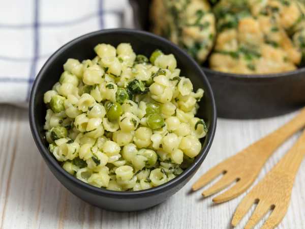 В это время вскипятим в кастрюле воду, слегка присолим ее и отварим пасту в течение 5-7 минут, в зависимости от указаний на упаковке.