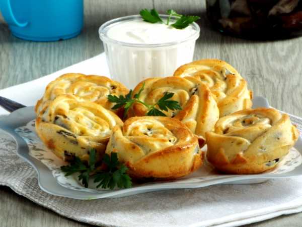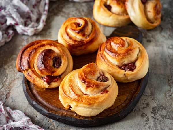 Сложите свободные правый и левый края теста по направлению к центру, а затем сверните тесто с начинкой в рулет и защипните край теста. Повторите процедуру с оставшимся тестом.