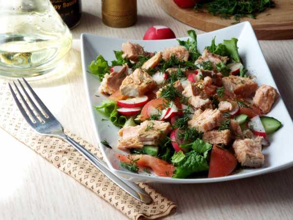 Смешайте оливковое масло, винный уксус, соль и перец, перемешайте заправку до однородного состояния, полейте заправкой салат.