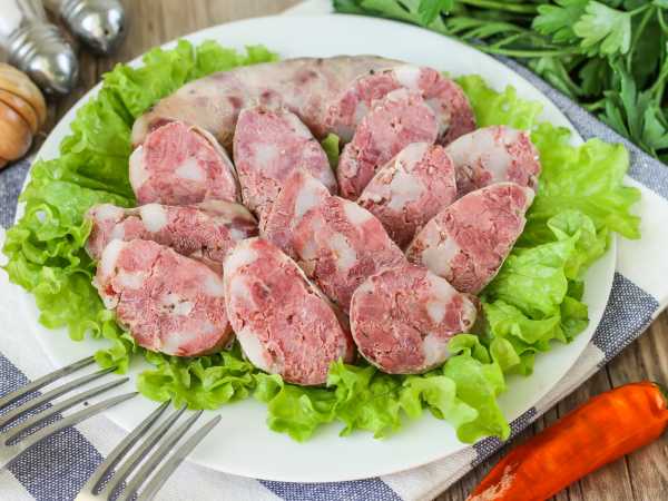 После этого домашнюю колбасу из говядины можно нарезать и подавать к столу как холодную закуску.