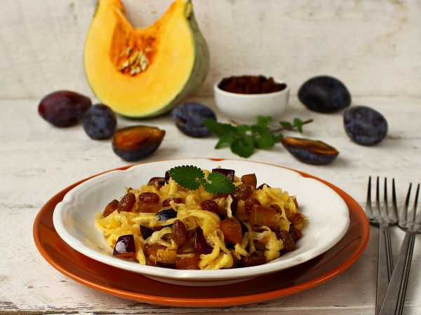 Поместите постную запеканку из тыквы в духовку, разогретую до 175 градусов, и выпекайте 40-50 минут, до золотистого цвета.