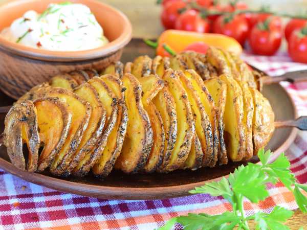 Картошка со сливками и сыром, запеченные в духовке, готовы к подаче на стол.