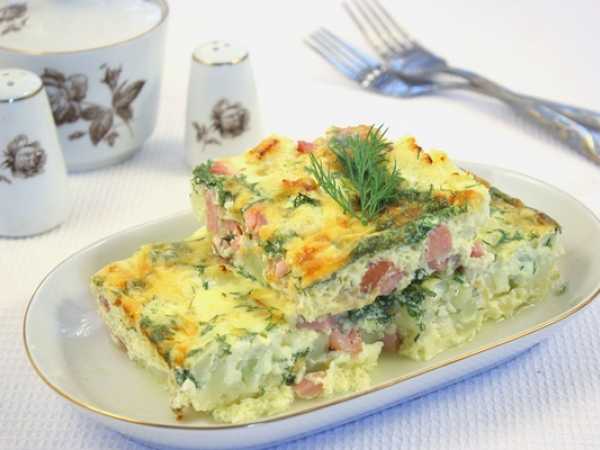 Поместите омлет в разогретую до 180 градусов духовку и выпекайте 30-40 минут.