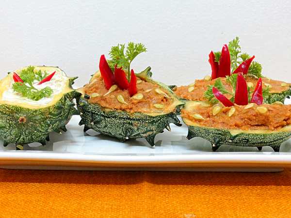 Металлической чайной ложкой с тонкими краями (еще удобнее - ложкой для карвинга, для вырезания шариков) делаем в огурцах углубления.