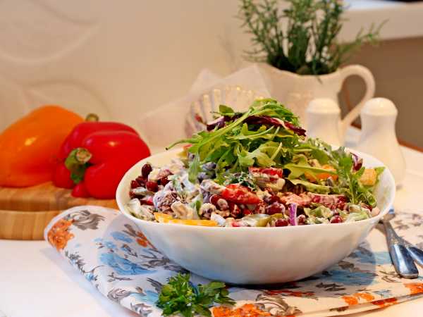Для заправки смешаем томатную пасту или кетчуп с майонезом, чуть разведём кипячёной водой.