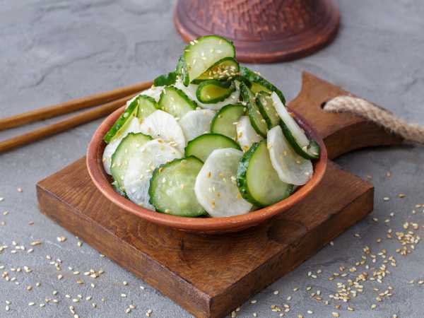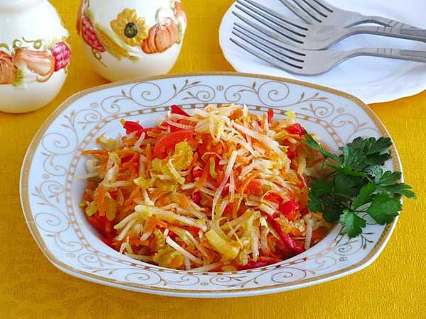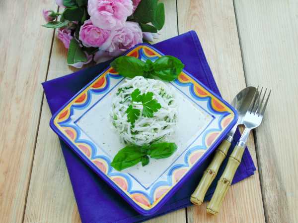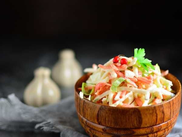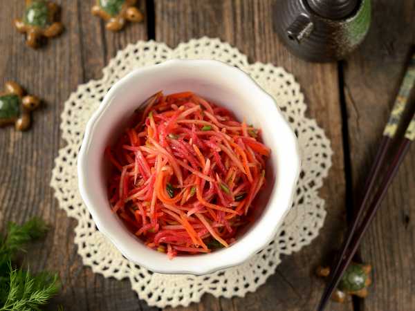 Итак, перед приготовлением промойте все овощи и яблоко прохладной водой, обсушите бумажным полотенцем и удалите кожуру. Дайкон покупайте свежий, с плотной мякотью. Если овощ будет вялым, соответственно, и вкус салата будет не тот.