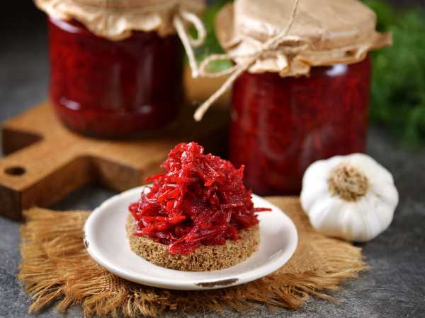 Поставить банки с салатом вверх дном, укрыть одеялом, остудить сутки. На зиму салат из свеклы «Пальчики оближешь» можно поставить в погреб или кладовку.