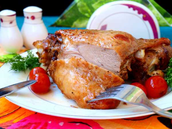 Я использовала большое бедро индейки, но его можно заменить любой другой частью. Индейку вымыть, снять кожицу, зачистить от пленки, снять с кости и нарезать небольшими кусочками. Чашу мультиварки разогреть, влить 1-2 ст.л. растительного масла и выложить индейку.