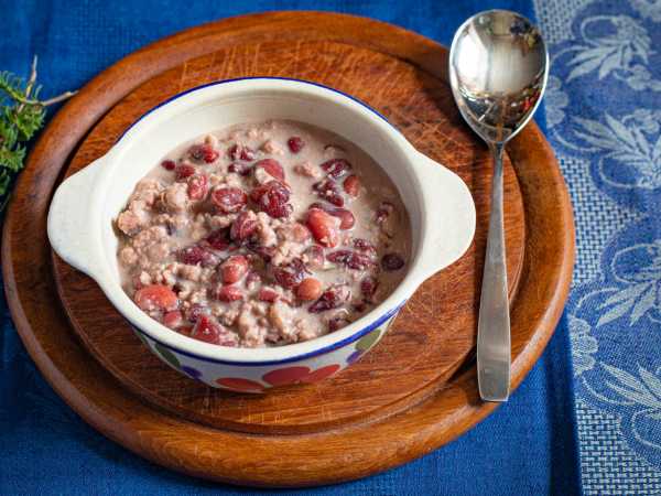 Вливаем сливки и выкладываем сливочное масло в кастрюлю с пюре. Ставим кастрюлю снова на огонь, прогреваем содержимое кастрюли и постепенно вливаем жидкость, в которой варился горошек, до получения нужной вам консистенции супа-пюре.
