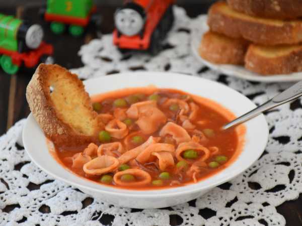 Готовый суп-пюре из замороженного зеленого горошка подаем порционно с крутонами или сухариками.