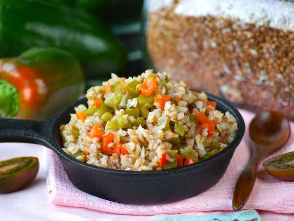 Наливаем горячую воду, запечатываем форму плотно фольгой и ставим гречку с овощами в духовку, разогретую до 200 градусов, на 40-45 минут, на средний уровень. Минут через 30 проверьте кашу на готовность. Если крупа впитала в себя жидкость, значит, блюдо готово. Отключаем духовой шкаф и даем каше настояться минут 15. Готовое блюдо перемешиваем, при желании посыпаем нарезанной зеленью.