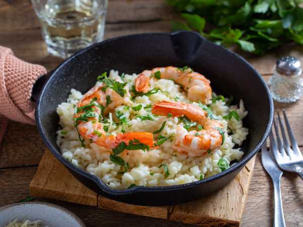 Рис очень желательно использовать специальный "для ризотто" (сорта арборио, карнароли, виалоне и т.д.), но в качестве импортозамещения или по причине экономии можно вполне вкусно приготовить и из обычного круглозерного.