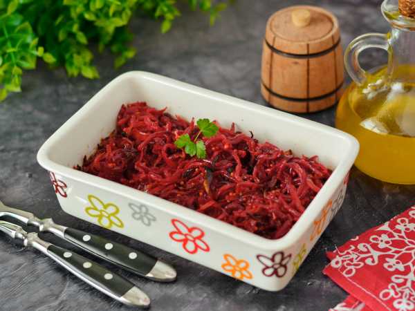 Очистите и нарежьте свеклу небольшими кубиками. Поместите кусочки свеклы в салатник, добавьте 2 ст.л. нерафинированного подсолнечного (или оливкового) масла и хорошо все перемешайте. Обволакивая кусочки свеклы, масло задержит распространение свекольного сока по остальным компонентам салата и придаст легкий аромат и вкусовой оттенок блюду.