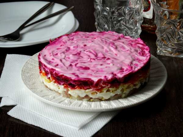В последнюю очередь аккуратно вмешайте в салат свеклу.