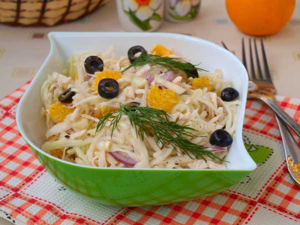 Влейте подготовленную заправку и еще раз все хорошо перемешайте. Попробуйте салат и добавьте щепотку сахара, соль, молотый черный перец или еще немного растительного масла по вкусу.