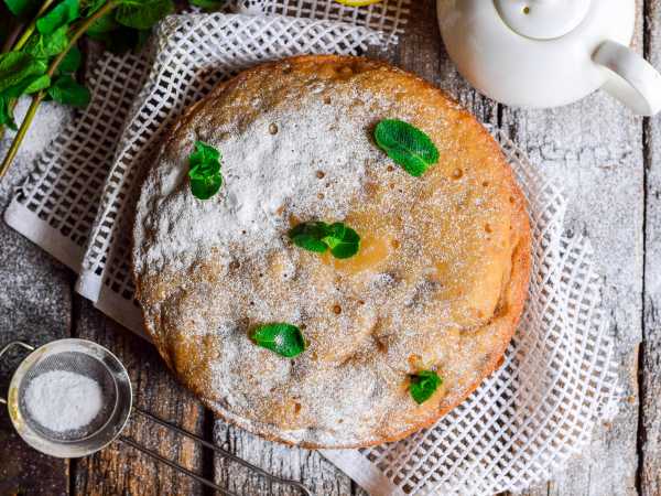 Вынимаю чашу с маковым пирогом из мультиварки, даю ему немного остыть. Перекладываю готовый пирог на блюдо. Через ситечко посыпаю остывшую выпечку сахарной пудрой.