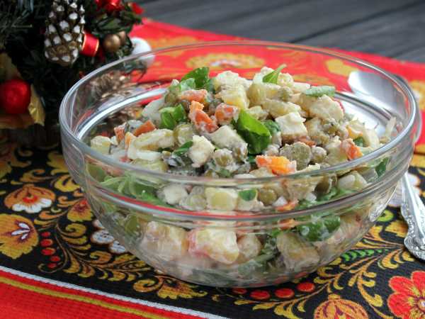 Двадцать минут назад прочитала и сразу же приготовила (запекала вчера курицу в духовке целиком, грудку никто не ест, осталась). Салатик очень вкусный, заправляла майонез+сметана.