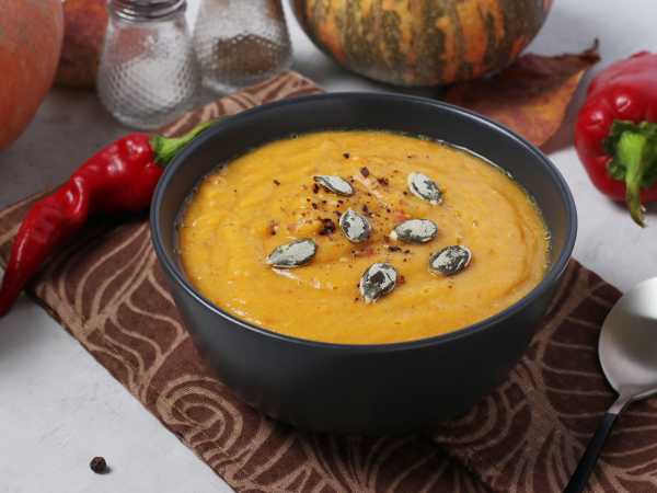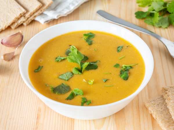 Выключим огонь и дадим супу 2-3 минуты настояться. Украсим суп с тыквой и чечевицей зеленью и подадим к столу. Ароматный, нежный, сытный и вкусный суп порадует вас и цветом, и вкусом! Я добавила ещё семена чеснока, сочетание сладости тыквы и остроты чеснока очень гармонично!