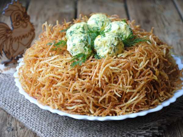 В отдельной кастрюльке сварить картофель в мундире. Также сварить яйца.
