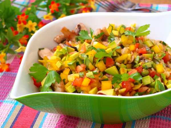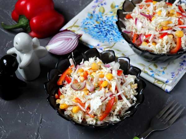 Нежная курочка, сочная капуста, яблоко и перец отлично сочетаются с горошком. Приятного аппетита!