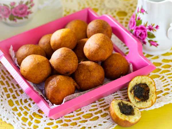 Посмотрите, сколько места внутри пышек бенье. Я начиняла их густым малиновым повидлом, для этого повидло переложила в кондитерский мешочек с тонкой насадкой. Протыкаю пончик насадкой и заполняю повидлом, пока не почувствую сопротивление.