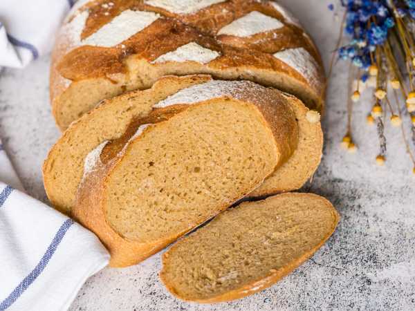 Круглый хлеб из пшеничной муки готов.