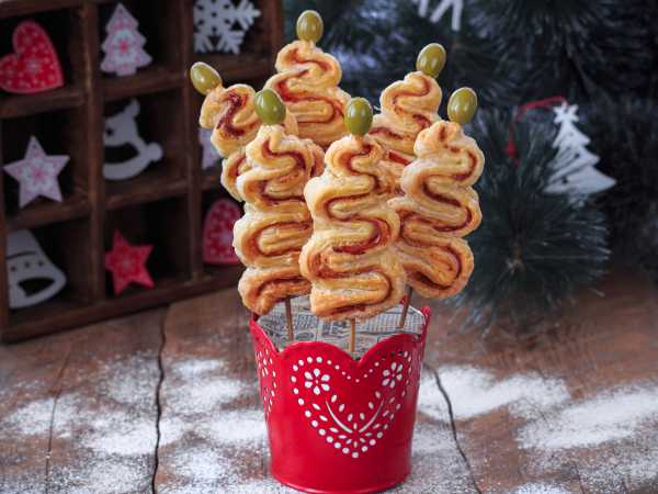 Слоеное тесто раскатайте толщиной до 0,5 см, выложите в формочки для маффинов. Накройте тесто маленькими квадратиками бумаги для выпечки, насыпьте в каждую заготовку любые бобовые. Выпекайте тарталетки при 180 градусах 20 минут.