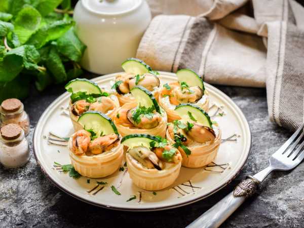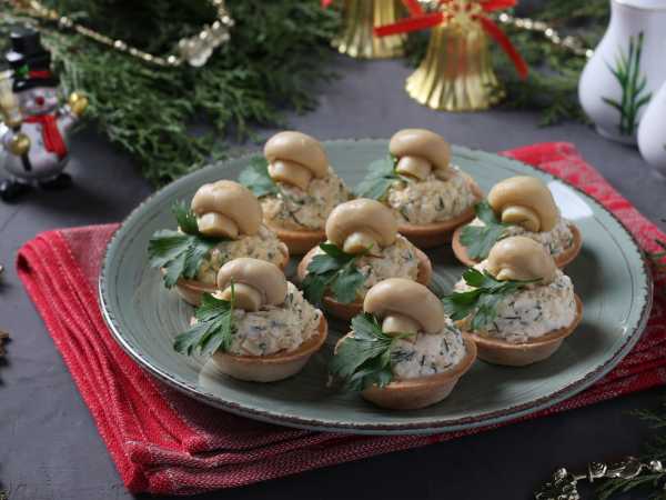 Вкуснейшие тарталетки с курицей, грибами и сыром готовы к дегустации.