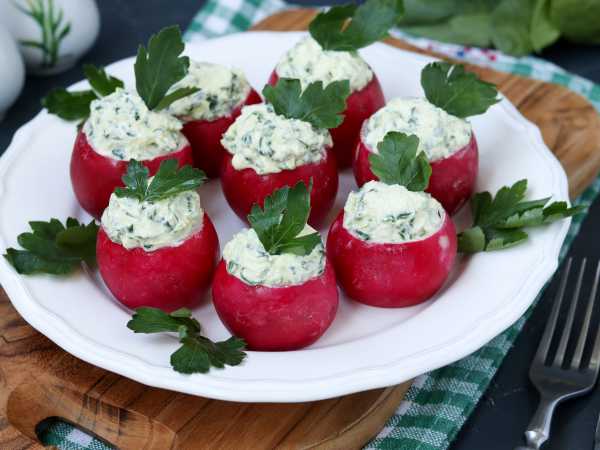 Добавить укроп в крем, выдавить зубчик чеснока, всё размешать.