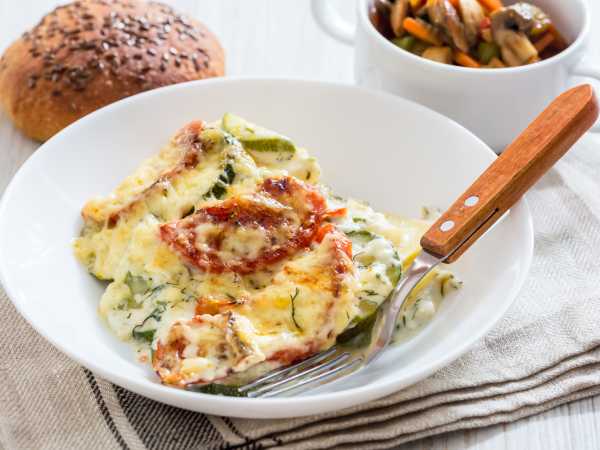 Залить соус поверх картофеля. Запекать картофельную лазанью с фаршем 30-40 минут. Первые 20 минут запекать под пищевой фольгой, после фольгу убрать и запекать еще 10-15 минут.