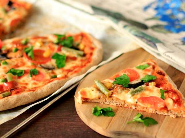 Делал с зимней заготовкой, соте из баклажанов и кабачков с помидорами. Мука не высшего сорта, а цельно-зерновая.