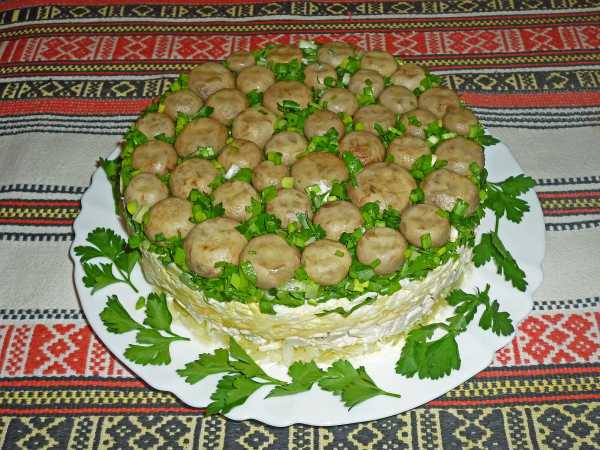 Ни одно торжество не проходит без классических салатов на столе, будь то «Оливье» или «Селедка под шубой». Предлагаю вам рецепт оригинального салата, который, возможно, впоследствии будет в списке ваших любимых рецептов. Приготовить этот вкусный и сытный салат можно не только на какое-либо торжество, но и на семейный обед или ужин, потому что готовится он быстро и несложно.