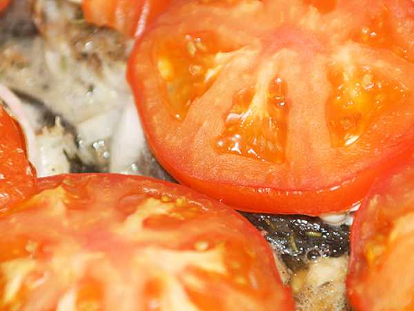 Помидоры черри также выкладываем целиком, они должны слегка обуглиться с обеих сторон.