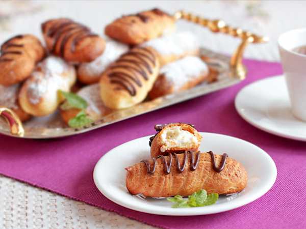 Эклеры со сливками готовы к дегустации. Приятного чаепития.