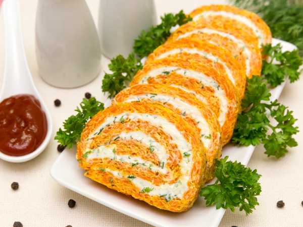 Что мы имеем? Получились блинные рулетики с рыбой, курицей и ветчиной с сыром. Постарайтесь скатать из блинов плотные рулетики, чтобы во время формирования роллов начинка не высыпалась.