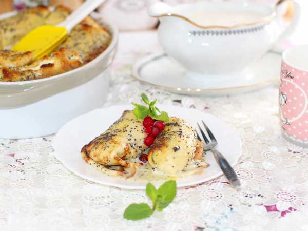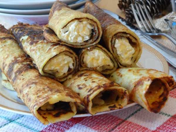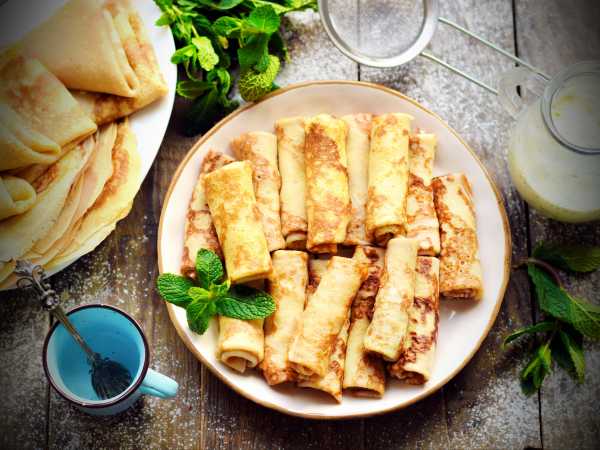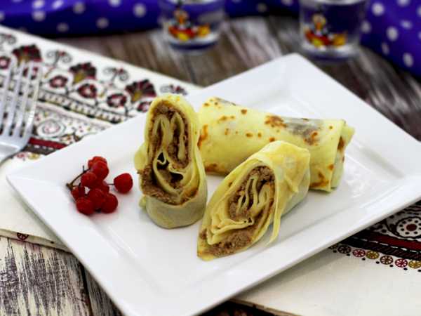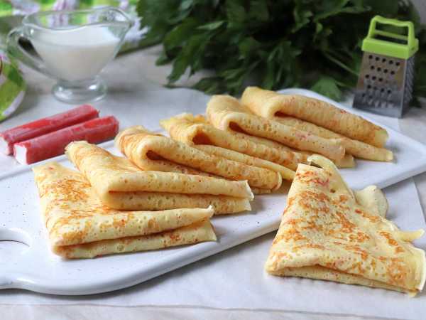 Мне очень нравится этот рецепт теста своей простотой на всех этапах: замешивается быстро с помощью одного лишь венчика, выпекаются и переворачиваются блины без проблем, в итоге получаются нежные блинчики без хрустящих краешков, а это очень важно при сворачивании блинных рулетиков.