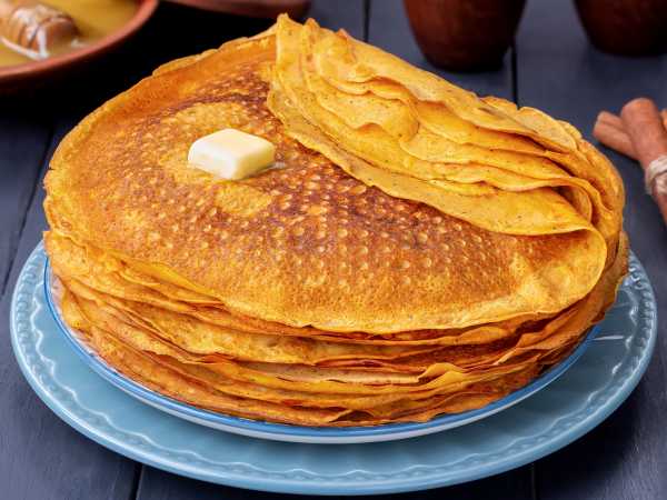 Готовые блинчики складываем стопкой и держим в тепле, накрыв, например, фольгой и полотенцем.