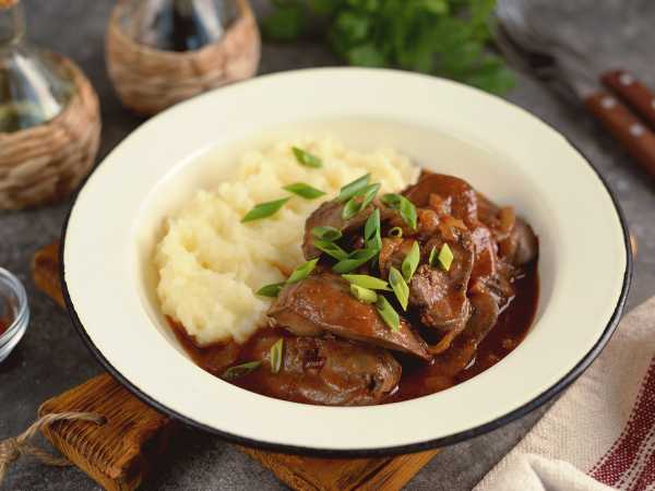 Печень промываем, при необходимости режем на небольшие кусочки.
