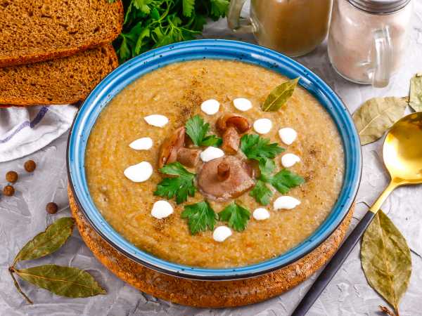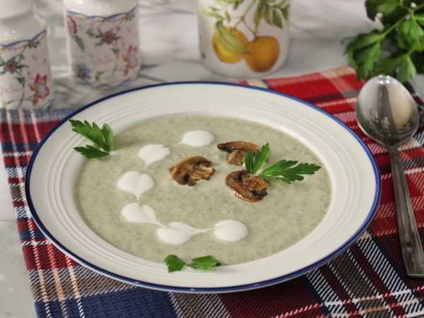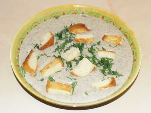 Нежный, сливочный суп-пюре из шампиньонов с чесноком готов.