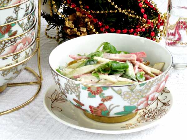 Салат с фасолью, яйцами и ветчиной - это такое блюдо, которое с минимальными усилиями можно сделать как зимним, так и весенним. Понимаете, про что я? Думаю, у всех есть рецепты, которые больше ассоциируются с холодным временем года, и есть те, которые едят преимущественно весной и летом. Я очень люблю салаты с фасолью (да чего уж там греха таить, Я ПРОСТО ЛЮБЛЮ ФАСОЛЬ!), и готовлю их из самых разных комбинаций продуктов. Но абсолютное большинство рецептов с консервированной фасолью у меня все-таки как-то зимние - тяжелые, сытные. А этот можно сделать так, а можно и иначе, если добавить к трем основным ингредиентам свежий огурец и МНОГО-МНОГО петрушки. Много свежих трав - это очень важно! Собственно, они даже без огурца замечательно обманывают органы чувств, перенося нас из зимних морозов на весеннюю полянку. Но с огурцом салат "фасоль - яйца - ветчина" еще и субъективно воспринимается как более легкий по калорийности, вот такой вот интересный парадокс. Это, конечно же, обман вкусовых рецепторов - благодаря фасоли, яйцу и ветчине салат сытный, калории из него никуда не делись! Но огуречная свежесть вместе с петрушкой этого почувствовать не дает. Так что, в общем-то, диетчики и худеющие, будьте осторожны! Вы можете попробовать оба варианта, а я сегодня приготовлю "лайт-версию".
