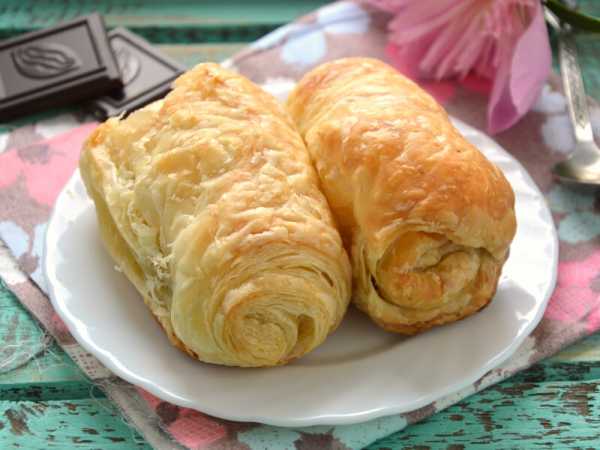Рулетики из слоеного теста с ветчиной можно есть как горячими, так и холодными.