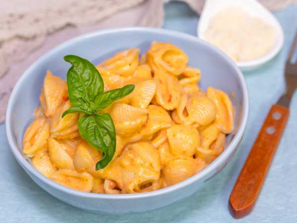 В закипевшую воду всыпать макароны. Добавить щепотку соли. Варить в соответствии с инструкцией на упаковке, макароны должны быть состояния al dente, внутри немного твердоватыми. Откинуть их на дуршлаг.