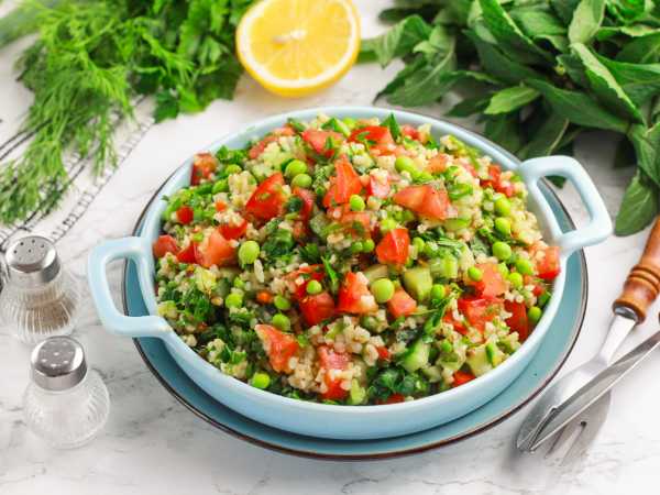 Выключив огонь, попробуйте блюдо и добавьте при необходимости еще немного соли и черного перца по вкусу. Затем присыпьте булгур 2-3 щепотками мелко нарезанной петрушки, прикройте сковороду крышкой и позвольте блюду настояться еще 5-10 минут перед подачей к столу.